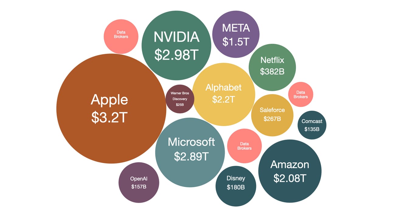 The economic stakes of this system are staggering. The world’s largest technology companies such as Apple, Amazon, NVIDIA, Alphabet, Netflix, Disney, Comcast, OpenAI, Microsoft, Salesforce, and Warner Brother Discovery have built their fortunes on the ability to monetize human attention.