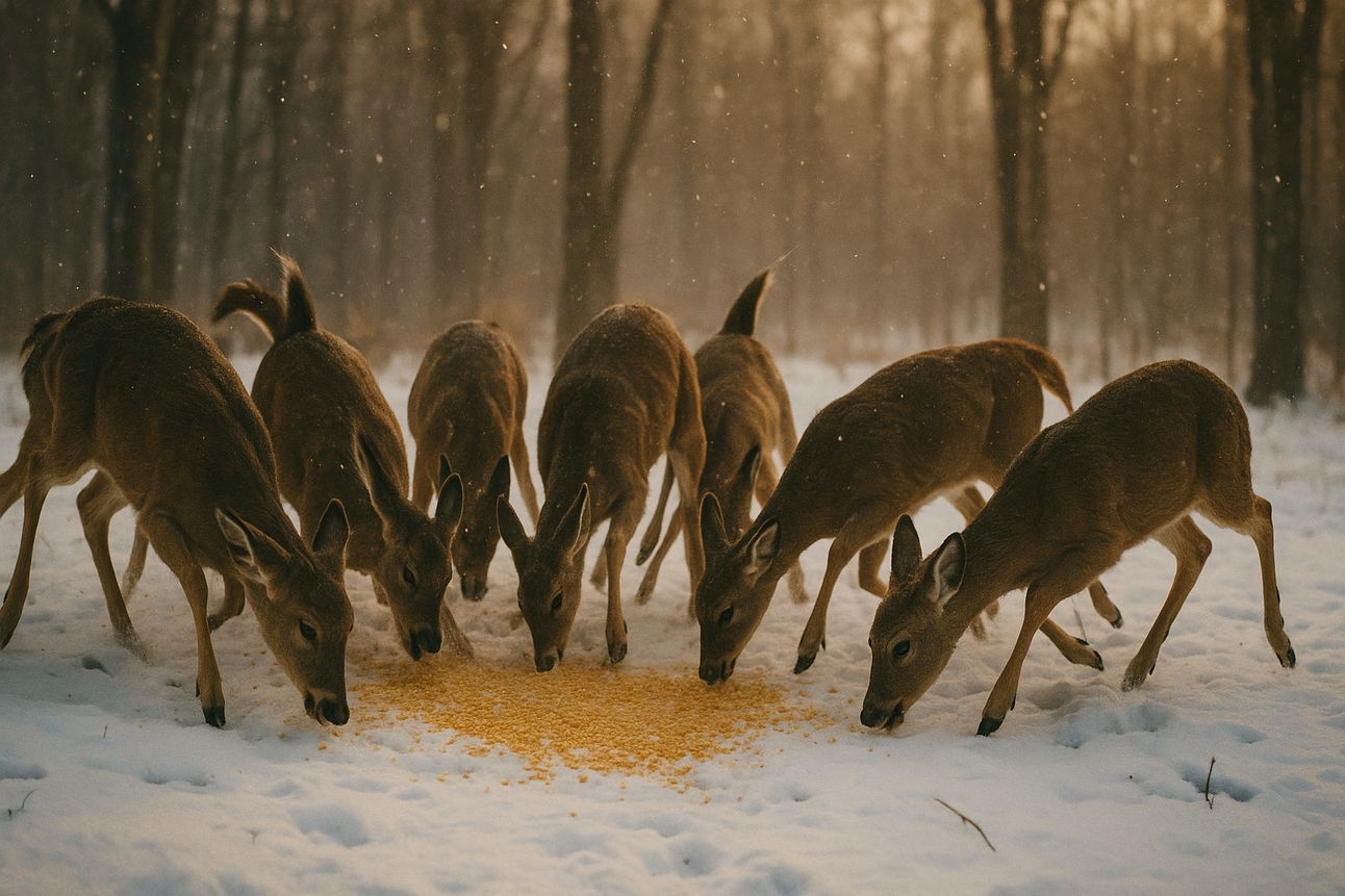 Then comes the mistake: someone dumps a pile of corn, hay, apples, or grain, dumped into the snow. The deer rush in and gorges themselves.