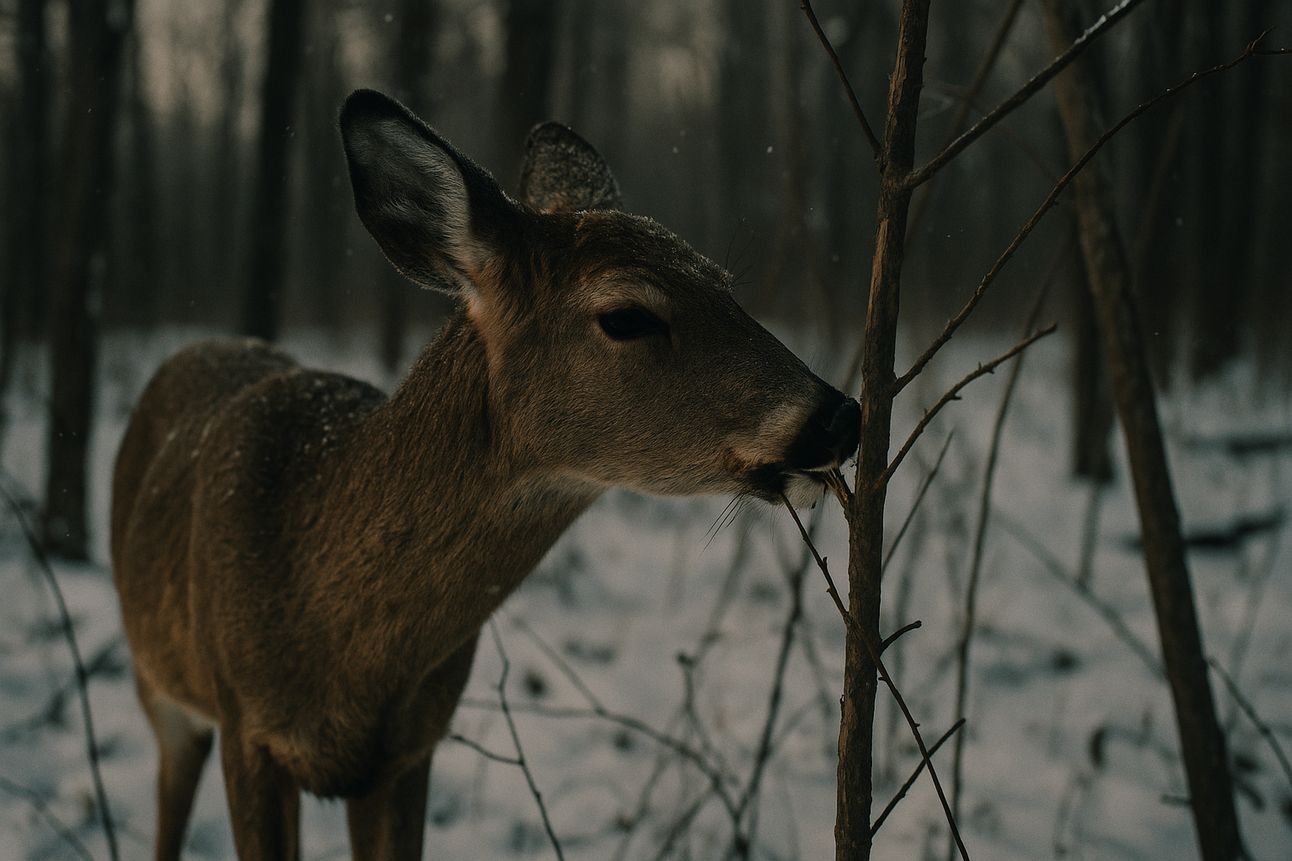 In harsh winters across the North, whitetail deer survive by eating bark, dead leaves, and woody twigs—far from ideal, but their bodies are adapted to it. Their stomach, houses millions of microorganisms specifically tuned to digest that rough forage. It’s not glamorous, but it works. It’s how deer have survived for thousands of years.